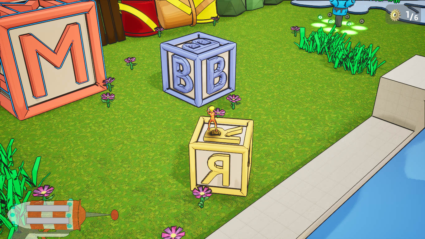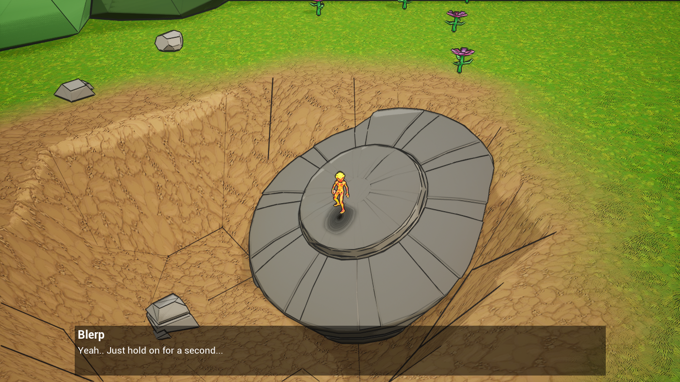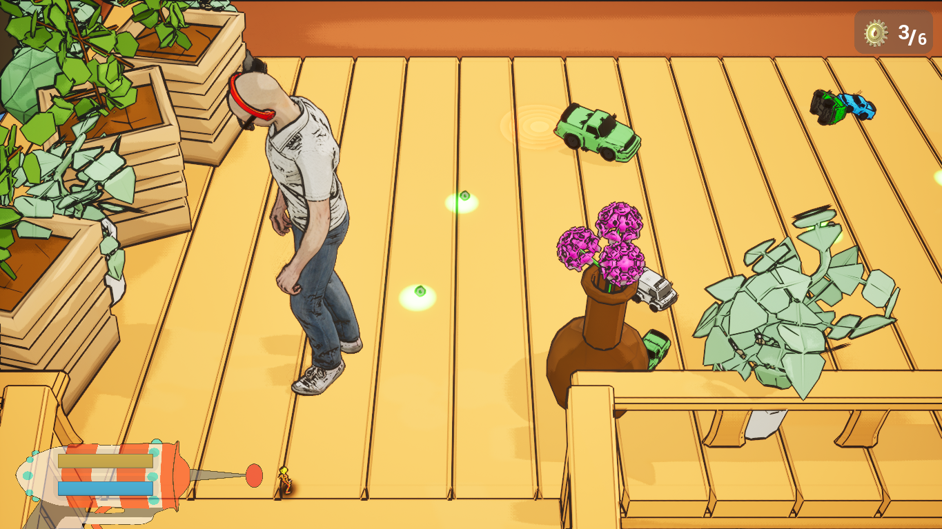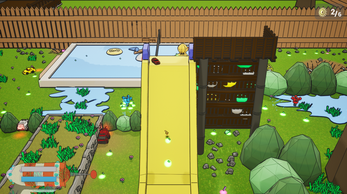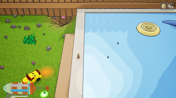 Blerp is a small fire alien that suffers an accident on his way back home from a party, now he is stranded in an uknown place called a "backyard". He has to collect the pieces of his ship using the new model of the Maxi-Minimizer, a gun that can change the size of (almost) any object to get out of there and arrive home safe and sound.